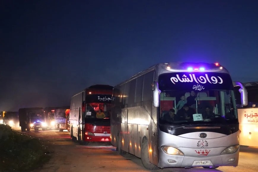 The third convoy of displaced Kurdish residents from Afrin departed from the city of Qamishlo today, Tuesday, April 14, 2026.